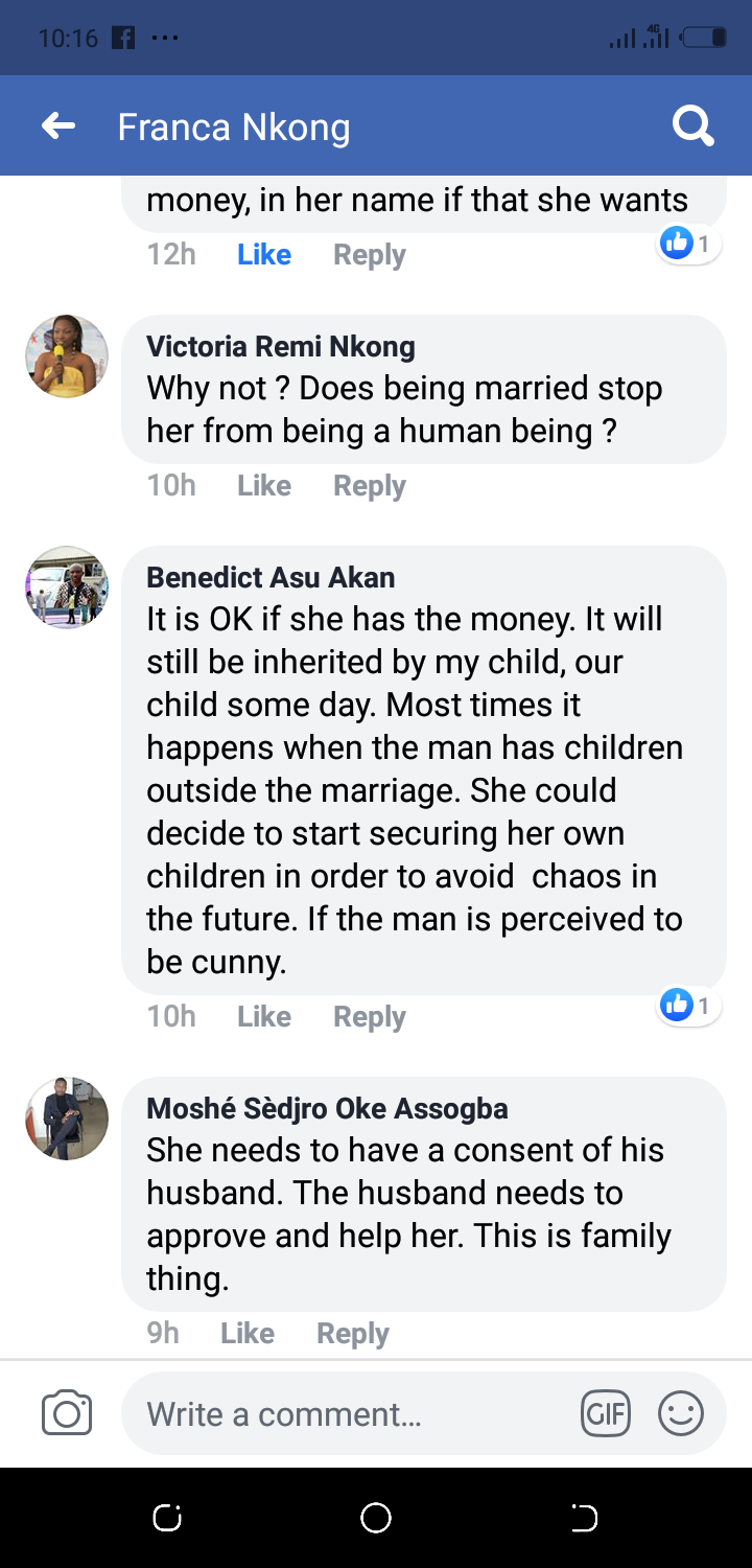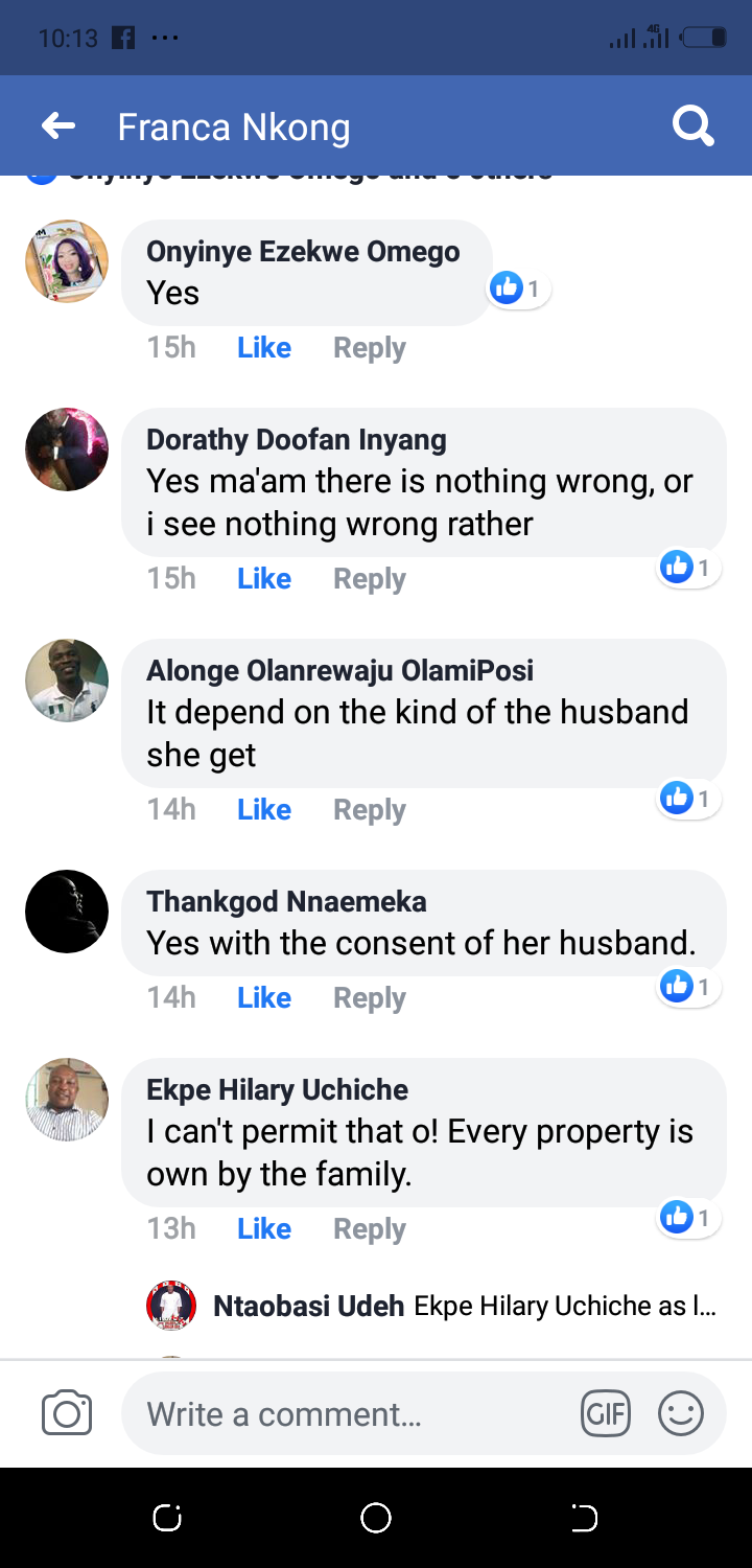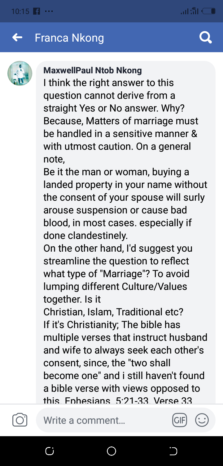 Is it out of place for a woman to protect herself by buying property in her name, I took to Facebook to get the responses in the screen shots.