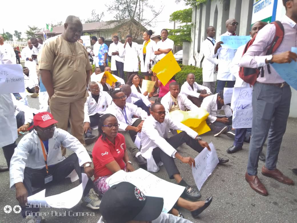 Following the kidnap of Dr Inyama , a medical doctor in Cross river state, Doctors in the state have staged a protest to the Governor’s office.