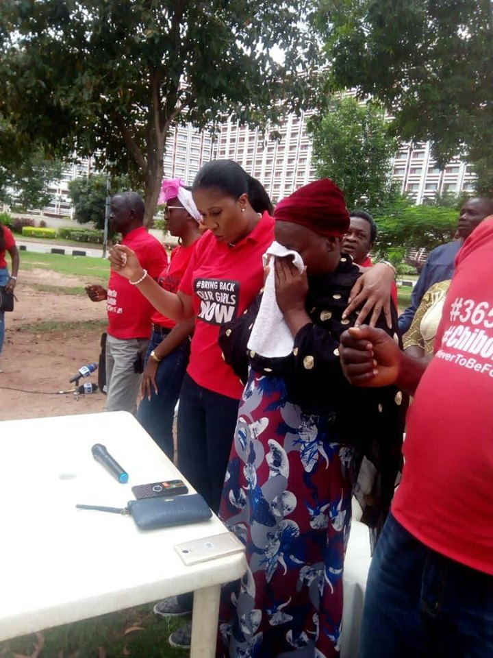 Meanwhile at the Unity fountain Abuja, where the group also gathered to mark the significant count, some mothers of the Chibok girls were caught on camera crying.