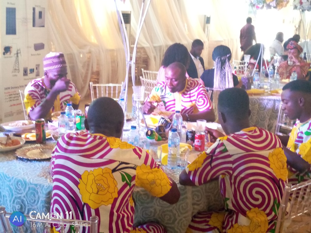 The annual thanksgiving which started with a church service at CAC Durumi dovetailed into a reception well attended by friends and family, characterized by plenty to eat and drink as well as people dancing to music from the famous Imole Ayo band.