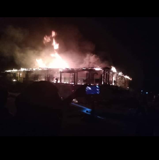 Reports saya building opposite Oliha market along Siluko road Benin city was on fire last night.