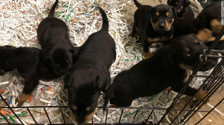 The gruesome discovery was found after Clover led two volunteers with Royal Animal Refuge to her puppies. The animal shelter had been contacted after the emaciated female had been seen traveling with her puppies in the area. When the volunteers arrived, they were unable to catch Clover.