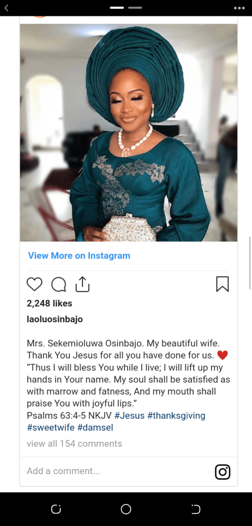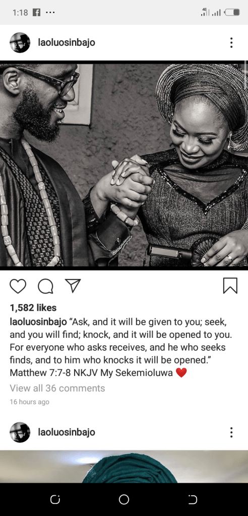 The groom took to his instagram page to express his joy and thank God for the gift of his bride.