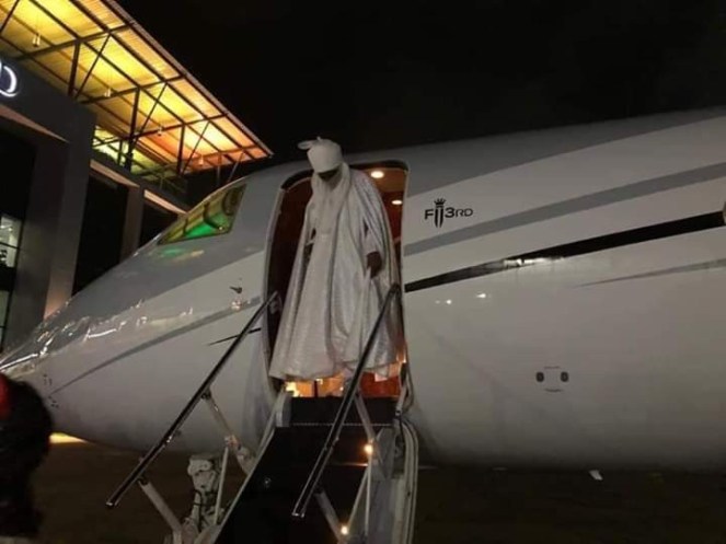 Photos show his arrival in Lagos.