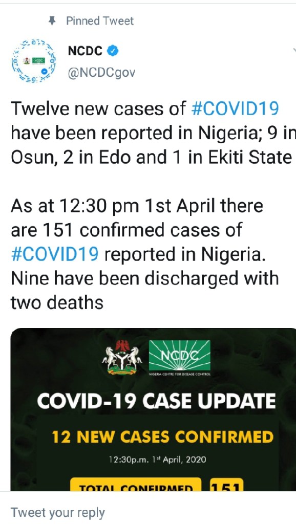 The total number of cases confirmed so far now stands at 151 with 9 recovered and discharged and 1 death.
