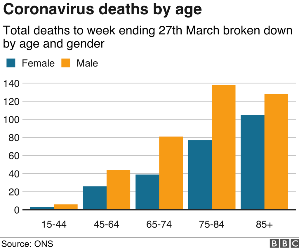 Of the 647 coronavirus-related deaths registered by the Office for National Statistics in England and Wales up to the week ending 27th March, 44 were aged 45-65 – around 7% of the total.