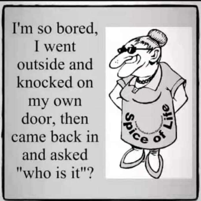 Did you hear about the woman who leaned out of her window and shouted, ‘’I am bored’’.