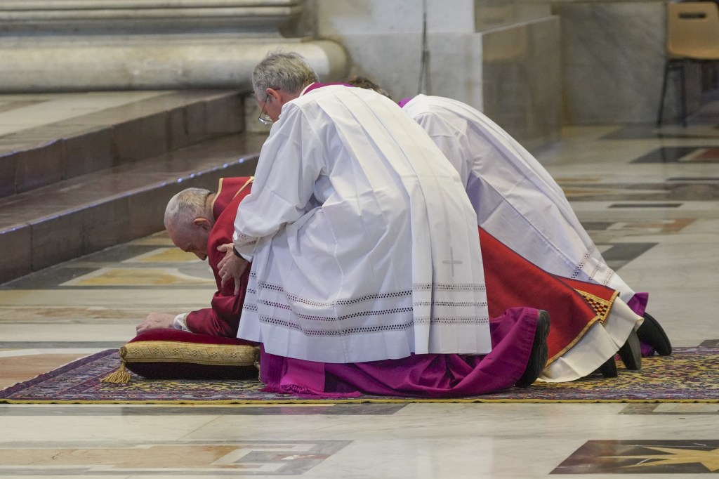 The celebration of the Passion of the Lord took place on the evening of Good Friday in a near-empty St. Peter’s Basilica.