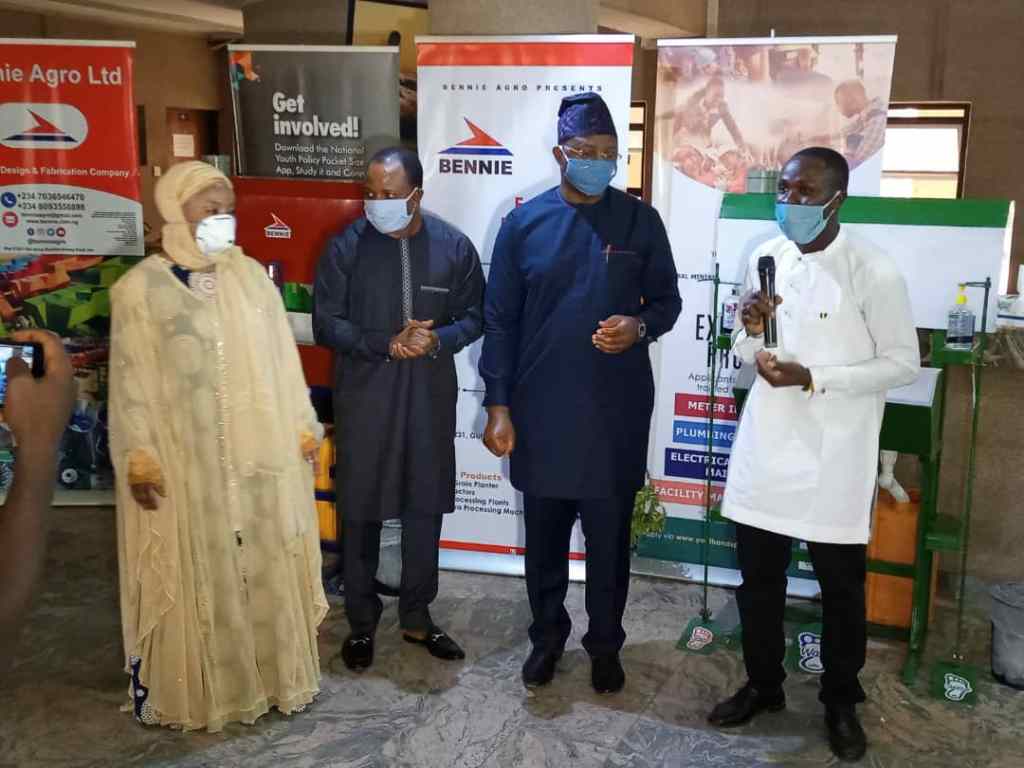 Speaking at the ceremony in Abuja, Mr. Dare commended the fabricator of the machine Mallo as well as the Corps members for their innovation and foresight in the fight against Covid-19. “This is a very symbolic occasion as these youths have come up with novel innovations to fight the Covid-19 scourge.Their response in partnering with the Ministry would go a long way to curtail the spread of the virus from container tops. Mass production of these products will further help achieve Government aims of job creation .The Ministry will support Bennie to build capacity to train Youths in welding and fabrication at our youth centres across the geo political centres. The NYSC has taken the bull by the horn in the fight against this pandemic by producing and distributing free hand sanitizer, face masks and soap.”