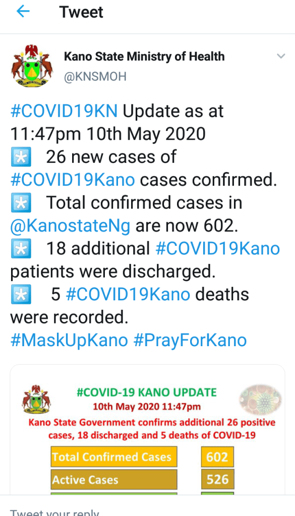 With the latest updates, Kano has a total of 602 confirmed cases of COVID-19 and 26 fatalities.