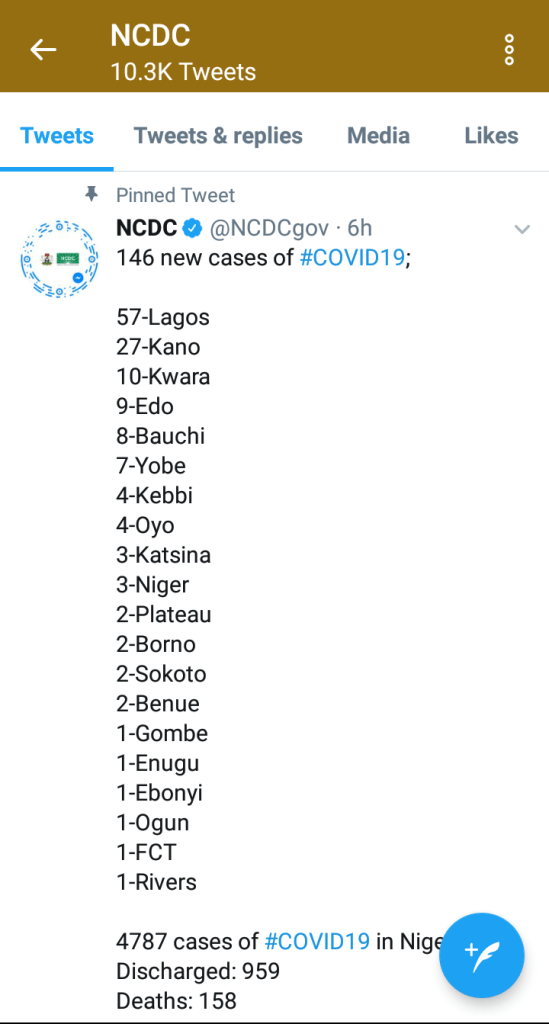 For the first time in several days, the number of new cases of Covid-19 reported by the NCDC has dropped.
