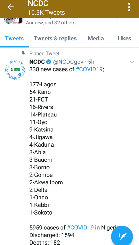 In a swift reversal of the reduced number of cases experienced last week, the NCDC has announced 338 new cases of Covid-19.