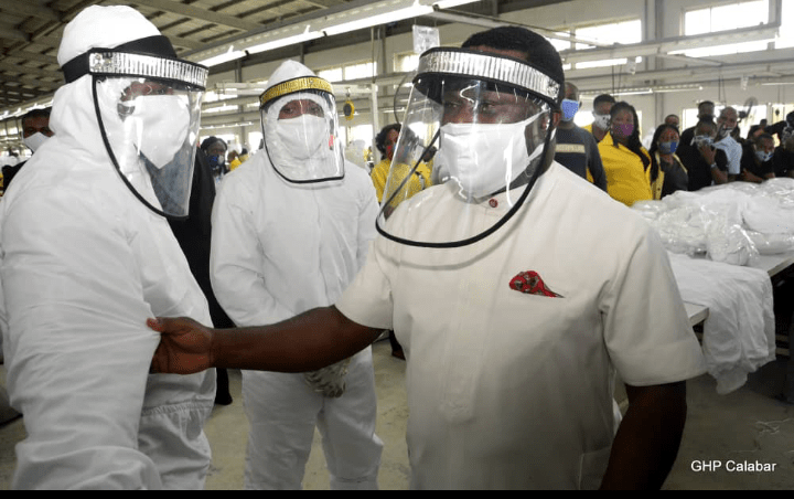 Cross River governor, Sir Ben Ayade has unveiled Personal Protection Equipment, PPE made at the state owned garment factory.