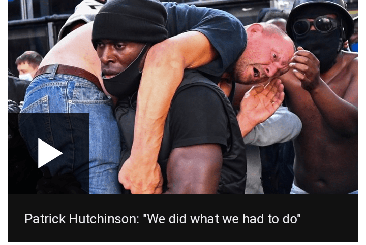 The individual pictured carrying a white man to safety following a clash between protest groups in London has said he and his friends “stopped somebody from being killed”.