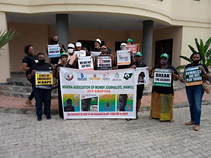 As part of activities to mark her seven day activism against rape, FCT Chapter of the National Association of Women journalists, NAWOJ led by the Chairperson, Comrade Stella, Okoh-Esene and FCT NUJ Chairman, Comrade Emmanuel Ogbeche.