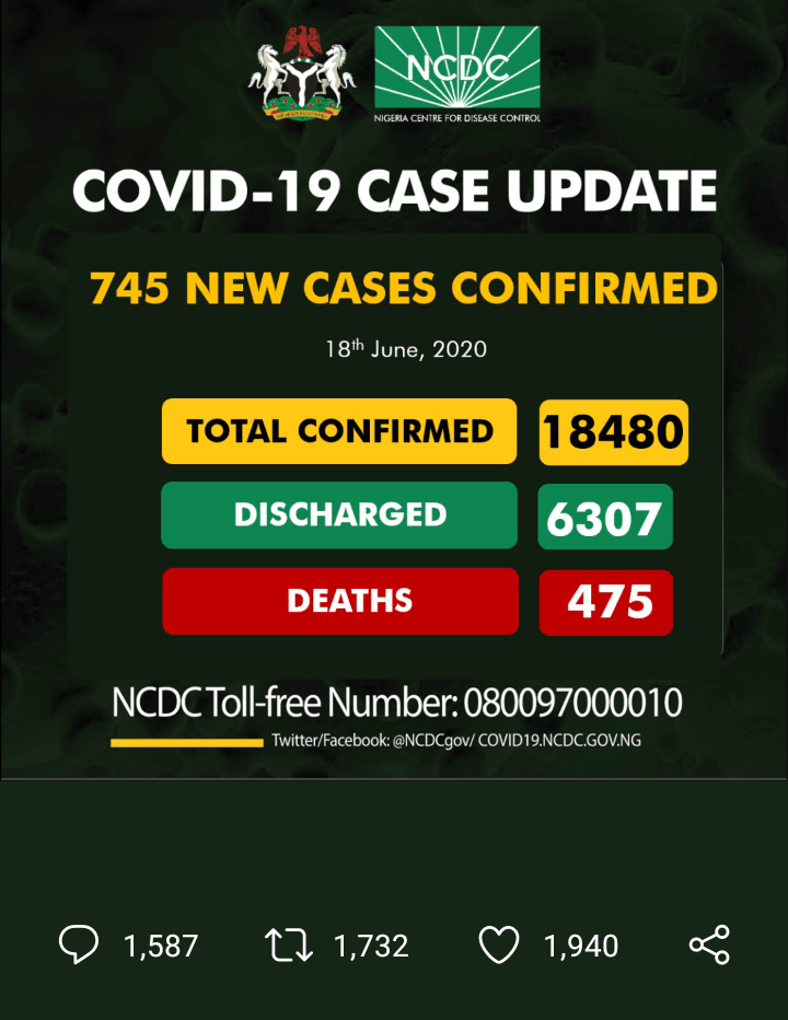 A record high of 745 cases have been reported by the NCDC with Lagos alone accounting for 280 cases.