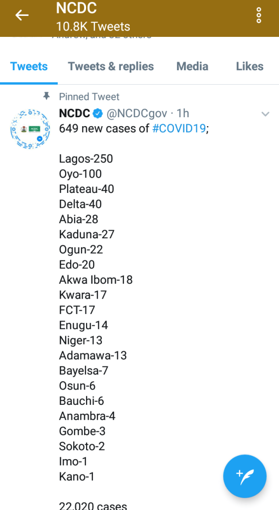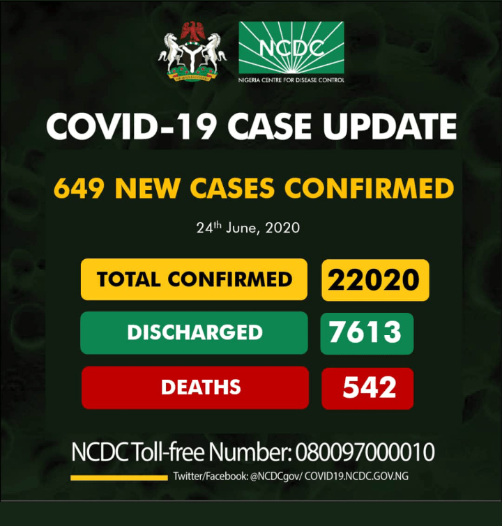 An additional 649 cases of Covid-19 have been confirmed by the NCDC as the number continues to rise.