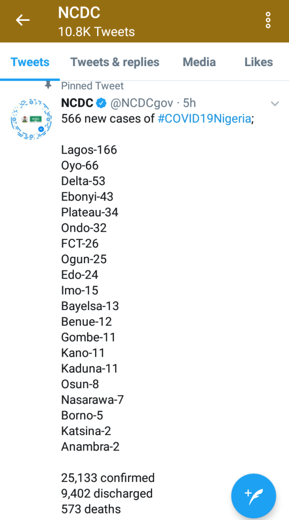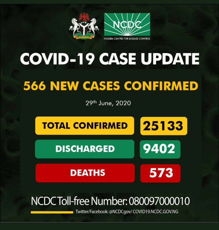 The NCDC has confirmed 566 new cases of Covid-19 in Nigeria. This comes on the day the interstate travel ban was relaxed.
