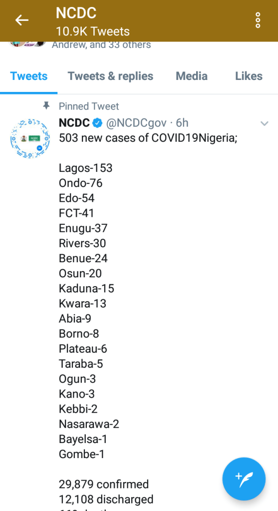 503 more cases of Covid-19 have been confirmed in Nigeria bringing the total number of cases so far to 29739.