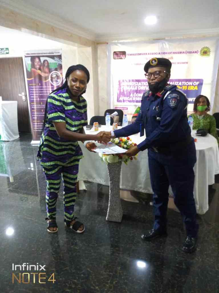 Deputy Commandant of the Nigerian security and civil defence Corps, Such Beatrice urged the female drivers to be of good conduct, avoid over loading and over speeding as well as equip themselves with self defence skills. According to her, Covid-19 is a war and should not be treated with levity.