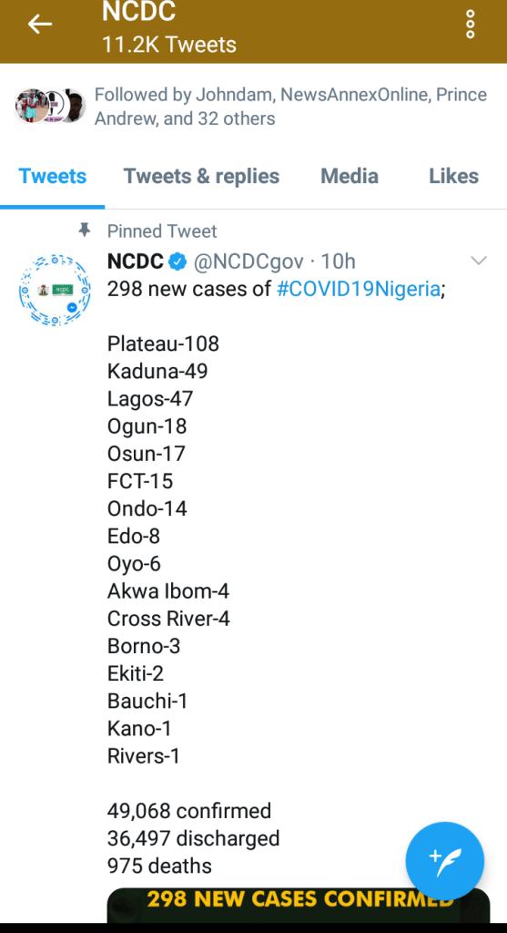 Plateau has beaten Lagos by recording the highest number of cases according to the statistics released for 16th August 2020 by the NCDC.