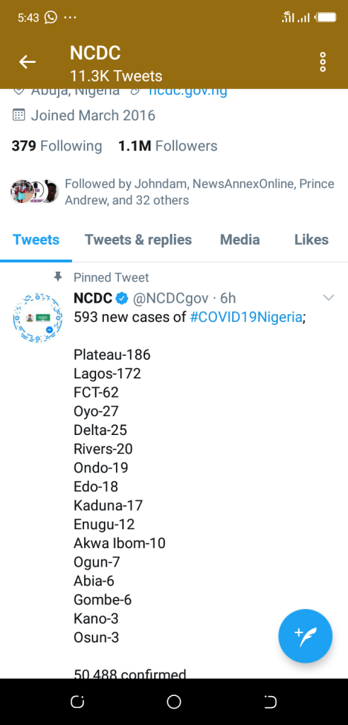 As Nigeria crosses the 50,000 mark, Lagos and Plateau have recorded high figures for new cases of Covid-19. Plateau has 186 while Lagos has172 .