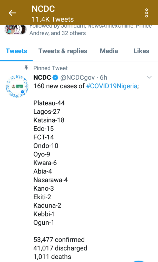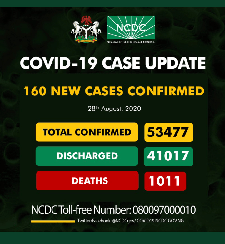 Things continue to look good as Nigeria recorded 160 new Covid-19 cases for 28th August according to the NCDC.