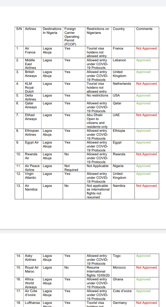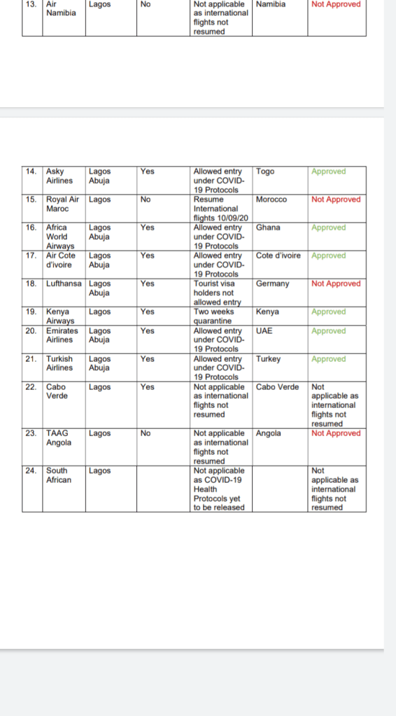While reading the list, the Minister stressed that all approved airlines must operate under Covid-19 protocol.