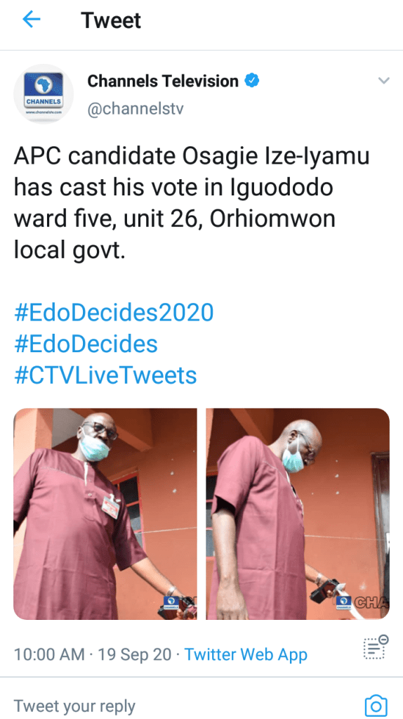 APC candidate Ize Iyamu was also pictured casting his vote.