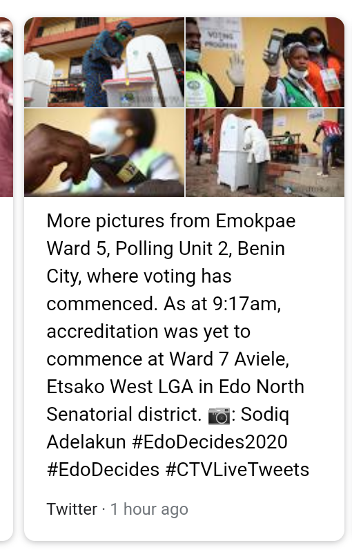 A peaceful atmosphere has been reported as Edo decides today. Though late accreditation was reported in some wards, the election has since commenced as reported by Channels Television. .