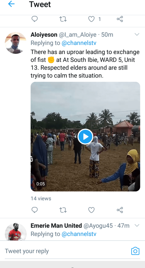 At South Ibie ward 5 some violence was reported by a respondent to a tweet by channels.
