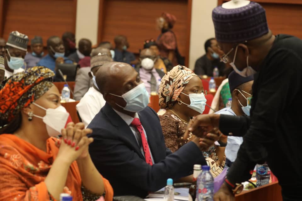 The Honourable Minister of State for Transportation, Sen. Gbemisola Saraki, the Permanent Secretary, Federal Ministry of Transportation, Dr. Magdalene Ajani and Directors of the Ministry were part of the delegation to the National Assembly.