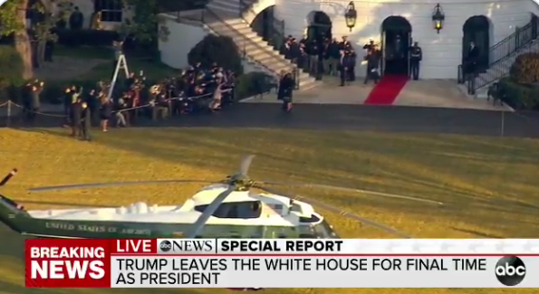 President Trump departed the White House for the final time as president — leaving embattled, twice-impeached and with his lowest approval rating in his four years in office.