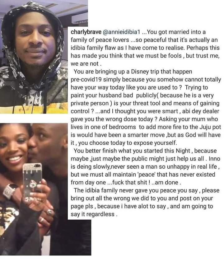 While some celebrities are lauding Annie for speaking up and venting her feelings, Tuface’s brother Charley took to his social media page to blast her. According to him, she was trying to be her controlling self.