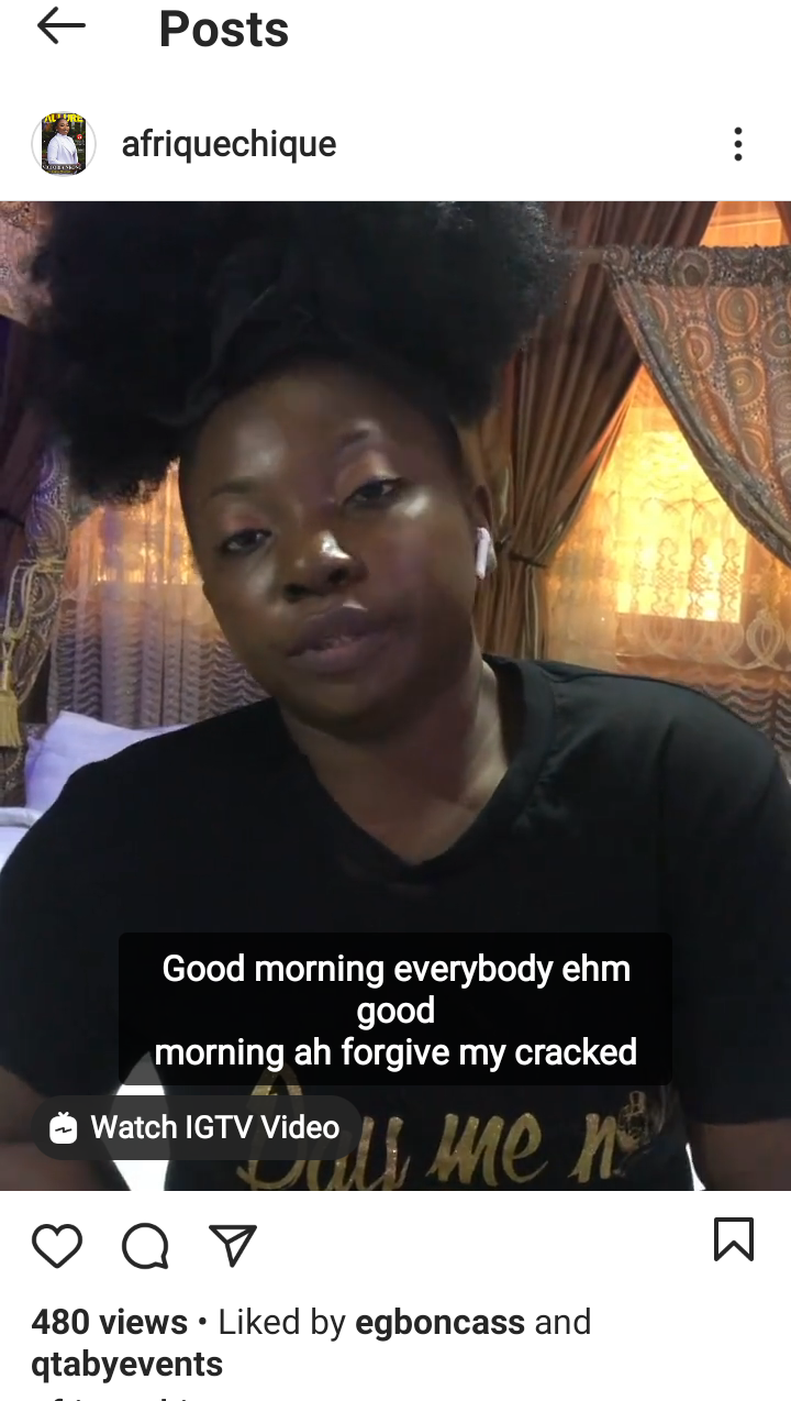 Victoria Nkong on a video on her instagram handle said she had delayed commenting on the issue while trying to get facts on the incidence before making a statement.
