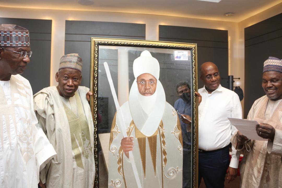 (L-R) Chairman, Dala Inland Dry Port, Abubakar Sahabo Bawuro, Kano State Governor Abdullahi Umar Ganduje, Minister of Transportation, Rt Hon. Chibuike Rotimi Amaechi and the MD, Dala Inland Dry Port, Ahmad Rabiu, during a congratulatory visit to the Minister at his office in Abuja on his recent turbaning as the Dan Amanar Daura.