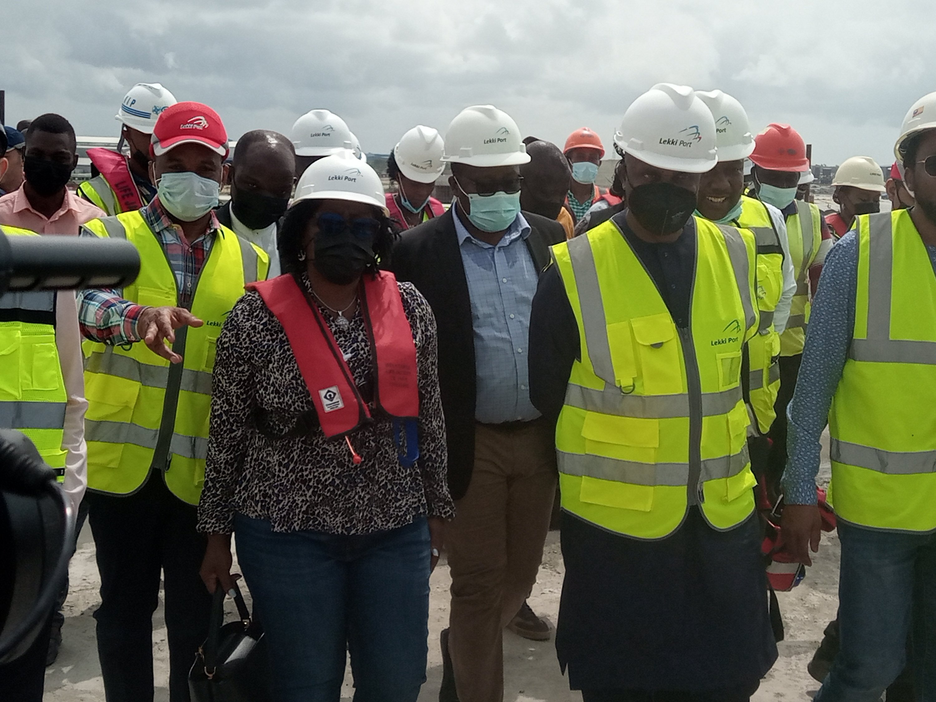 Minister of Transportation, Rotimi Amaechi , Perm Sec Dr. Ajani and others after inspection of Lekki Deep Sea Port project