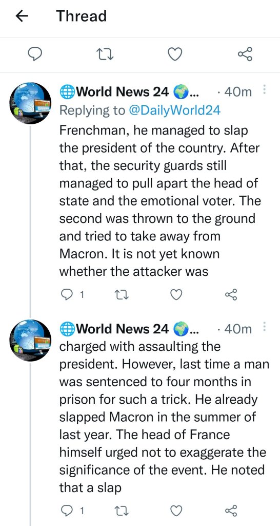 A video trending on social media shows France President, Emmanuel Macron being slapped by a woman