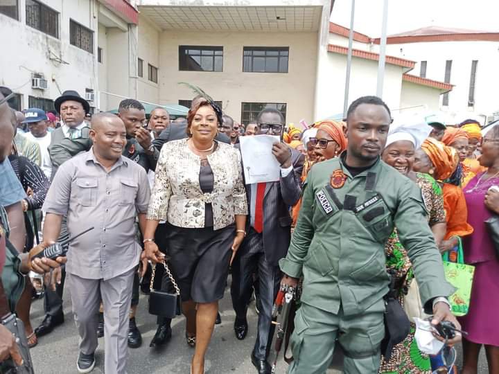 The member representing Urue Offong/ Oruko State Constituency Rt. Hon. Mrs Precious Selong after her inauguration was received outside the State House Chambers by her people from Urue-offong/Oruko LGA who were in the State House of Assembly hall to witness the historic program of her innauguration.