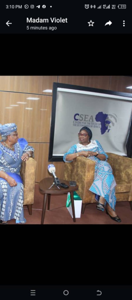 DG WTO, (L), at the Centre for the Study of the Economies of Africa, Abuja.