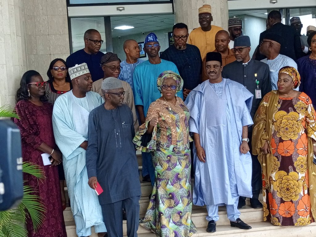 The new Minister of Transportation, Senator Said Alkali, accompanied by well wishers, was welcomed to the Ministry by the Permanent Secretary, Dr. Magdalene Ajani and Staff of the Ministry.