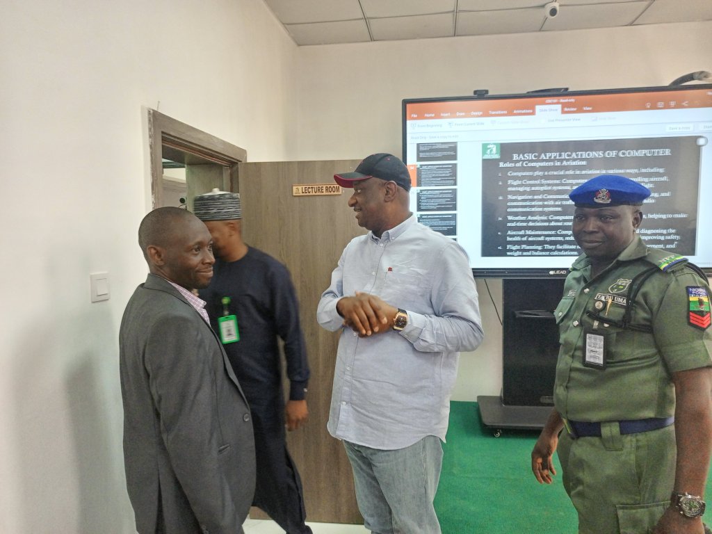 Hon Minister of Aviation and Aerospace Development, Festus Keyamo today inspected facilities at the temporary campus of African Aviation and Aerospace University at Bill Clinton Drive along Abuja Airport. While appreciating the registrar, Mohammed Sheik for midwifing the process successfully,he said the University has devised a system that will provide students with international qualifications, including ICAO and WMO certifications.