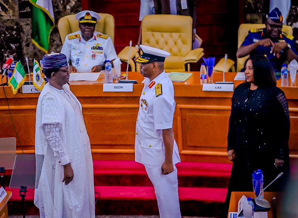 Security PHOTO SPEAK: THE HONOURABLE MINISTER OF STATE FOR DEFENCE, DR. BELLO MUHAMMED MATAWALLE, DECORATES THE NEWLY PROMOTED REAR-ADMIRALS IN THE NIGERIAN NAVY ON WEDNESDAY, 27TH DECEMBER in ABUJA December 27, 2023December 27, 2023 Francisca Ogar Rate this:Share this: Click to email a link to a friend (Opens in new window) Email Click to share on WhatsApp (Opens in new window) WhatsApp TweetShare on TumblrLike Loading... Published by Francisca Ogar View all posts by Francisca Ogar Share this: Click to email a link to a friend (Opens in new window) Email Click to share on WhatsApp (Opens in new window) WhatsApp TweetShare on TumblrLike Loading...