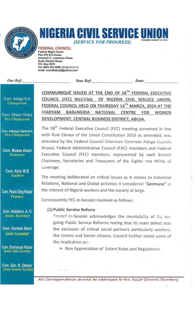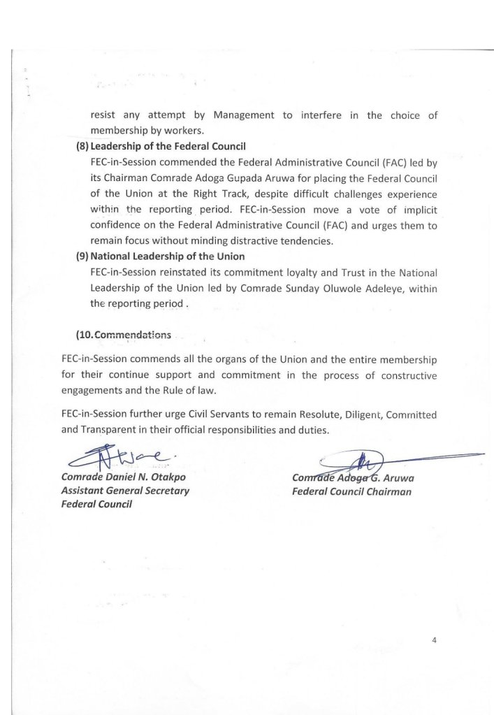 In a communique signed by Comrade Daniel Otaikpo assistant secretary general of the council, the leadership lamented the arbitrary retirement of civil servants as well as non payment of entitlements earned and severance allowances.