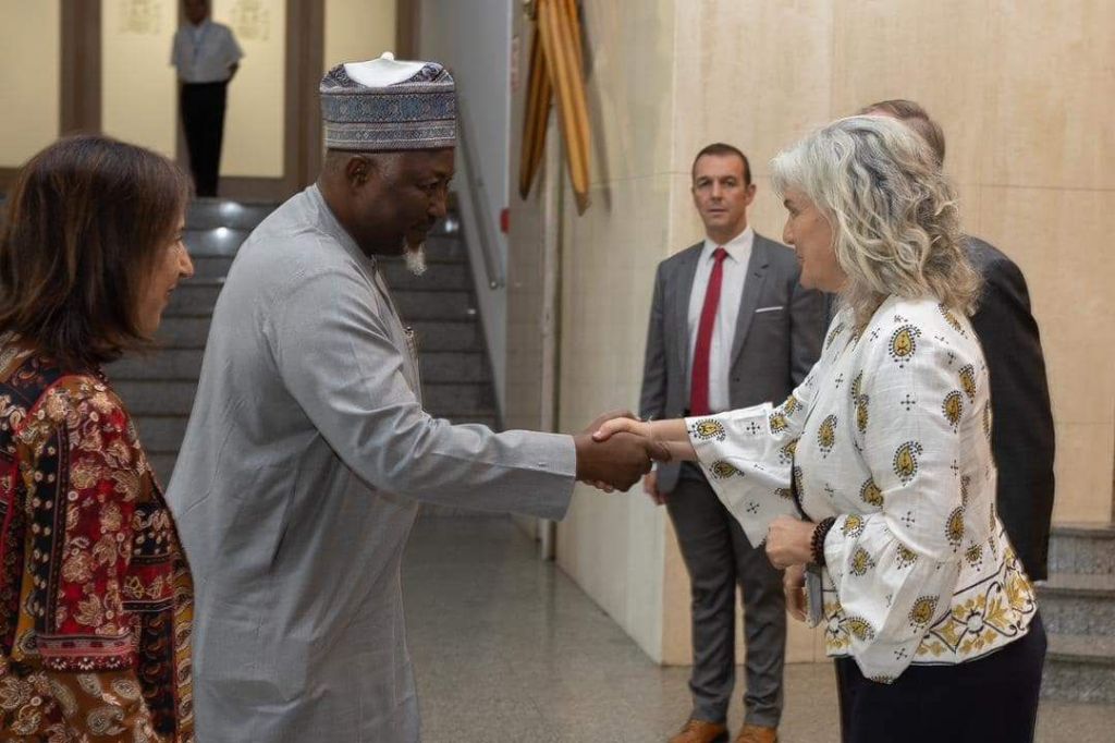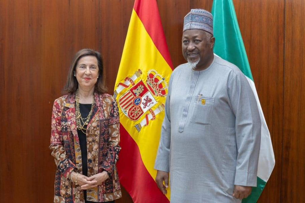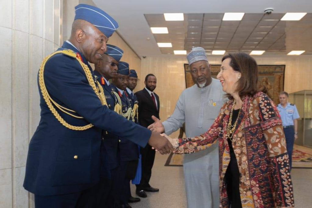 THE HONOURBLE MINISTER OF DEFENCE, H.E. MOHAMMED BADARU ABUBAKAR PAID. COURTESY VISIT TO DEFENCE MINISTER OF SPAIN, MARGARITA ROBLES AT HER OFFICE PASEO DE LA CASTELLANA IN MADRID.
