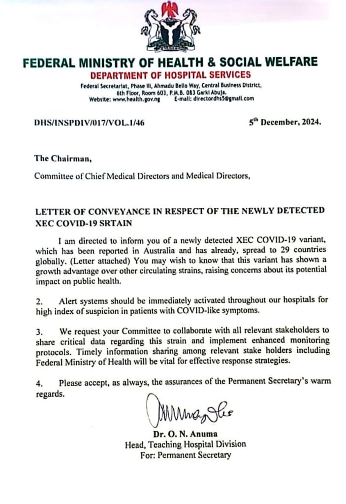 The federal ministry of health has raised alarm over the emergence of a new Variant of Corona Virus that has emerged .
