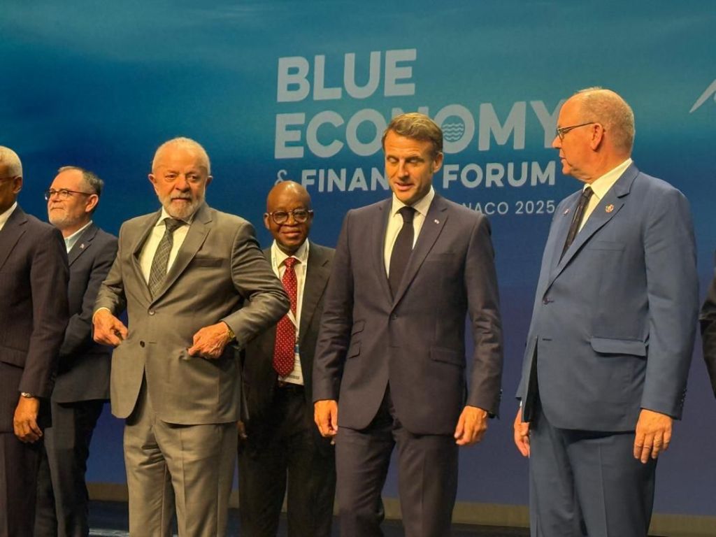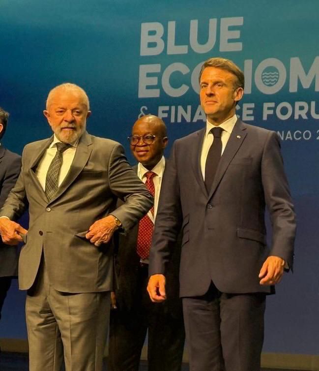 L-R: Brazilian President Luiz Inácio Lula da Silva; Nigeria’s Minister of Marine and Blue Economy, His Excellency Adegboyega Oyetola, CON and French President Emmanuel Macron at the Blue Economy and Finance Forum in Monaco on Sunday 8th June 2025.