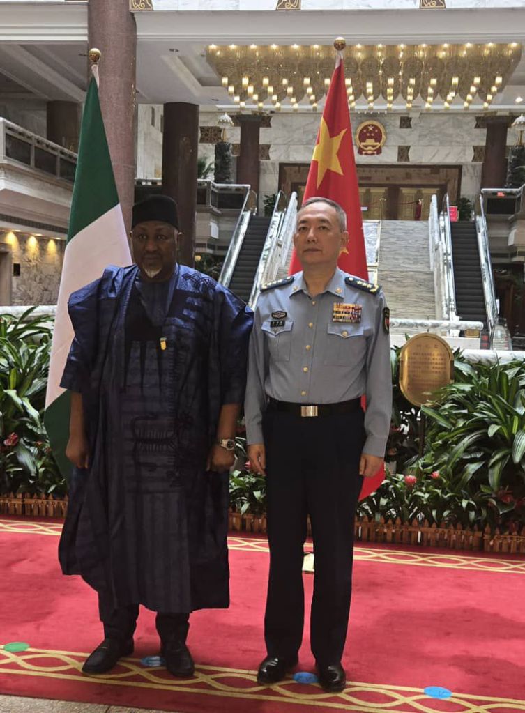 The Minister of Defence Mohammed Badaru Abubakar , held a high‑level bilateral meeting with Air Chief Marshal Xu Xueqiang, Minister, Department of Equipment and Development, People’s Republic of China, on the sideline of the 12th Beijing Xiangshan Forum.