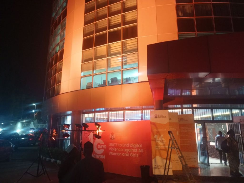 The highlight of the event was the switching on of orange lights for the ministry of women affairs by the Minister flanked by the permanent secretary,representatives from the UNFPA,Core group,NCWS. Rolac, spring, women for women and other partners.