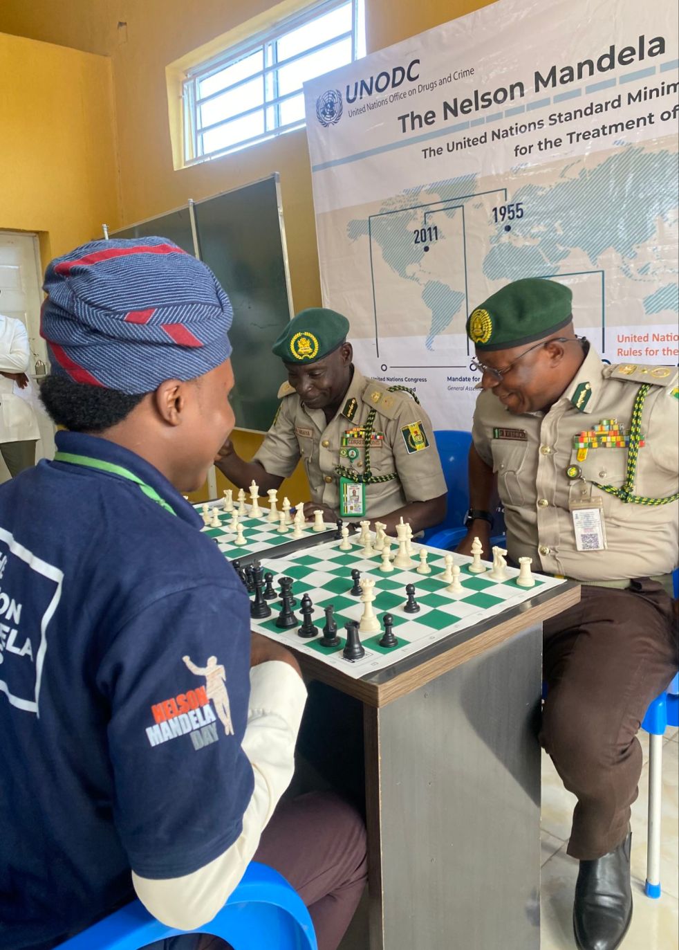 By Comfort Ntaji In commemoration of the legacy of Nelson Mandela , the United Nations Office on Drugs and Crime (UNODC), the Nigerian Correctional Service (NCoS) and the innovative non-profit organization Chess in Slums Africa have collaborated to bring the game of chess to the Maiduguri Maximum and Medium Security Custodial Centers, in Borno state.… Continue reading Nelson Mandela International Day 2024: UNODC Partners Nigerian Correctional Service and Chess in Slums Africa ,Launch Chess Program at Custodial Centers in Maiduguri, Borno